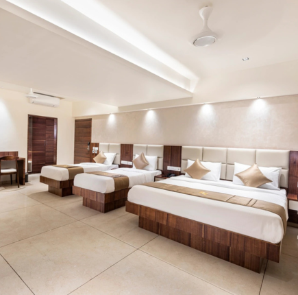 Relax in our elegant, air-conditioned rooms and suites featuring modern amenities, cozy interiors, and peaceful surroundings — designed for your ultimate comfort and satisfaction.